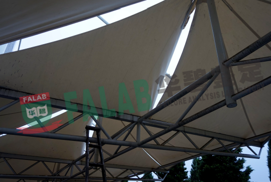 孙某在上海某膜结构工程公司处购买钢结构车棚拉膜,安装后的同年某月,孙某发现膜布开裂,光泽度不够,怀疑膜布厚度薄,存在产品质量问题。双方就此事向法院提起上诉,当地人民法院立即委托我单位对涉案车棚拉膜用料质量进行鉴定。
